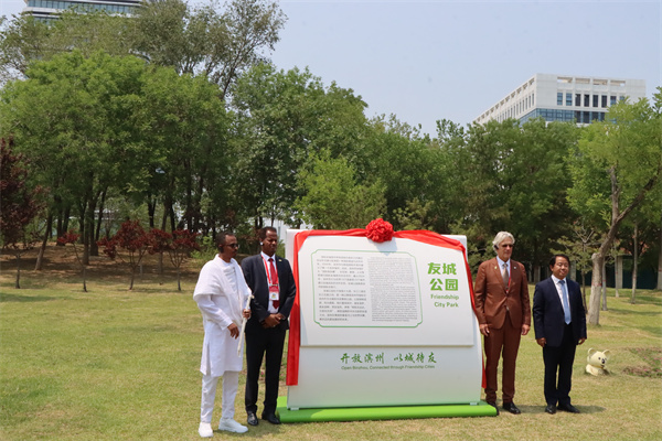 开幕式结束后,与会嘉宾赴友城公园参加了友城公园揭牌、共育“友谊树”仪式。